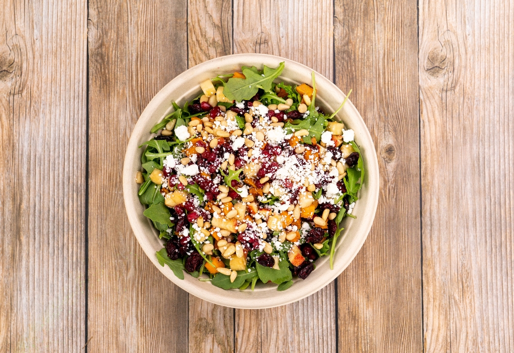 the crowd favorite - warm roasted sweet potatoes • gala apples • toasted almonds • goat cheese • fresh strawberries • dried cranberries • baby arugula • lemon basil vinaigrette on the side